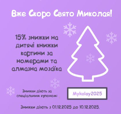 З 1 грудня по 10 грудня 2025 року ми раді оголосити спеціальну пропозицію для наших маленьких читачів та їхніх батьків. Отримайте 15% знижку на широкий асортимент дитячих книг, дитячі картини за номерами та дитячі алмазні мозайки які подарують радість та знання вашим дітям. Знижки діють за спеціальним купоном: Mykolay2025 Замовляйте найріднішим теплі подарунки сповнені сімейними […]