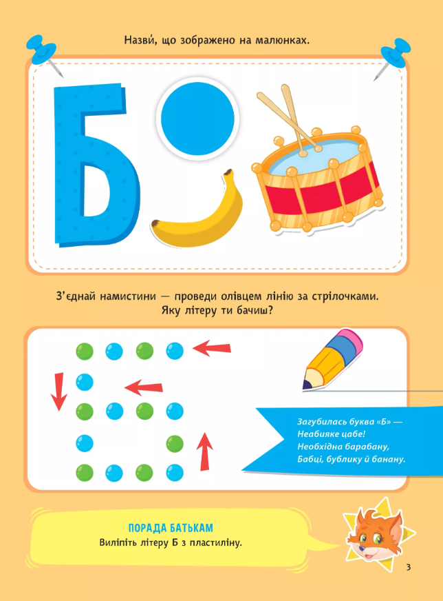 Книжка «Абетка» складена з урахуванням усіх модернових педагогічних підходів для вивчення літер. Яскраві ілюстрації допоможуть дитині сконцентруватися та стимулюватимуть фантазію, наліпки розвиватимуть моторику, а віршики та скоромовки легкі та цікаві.