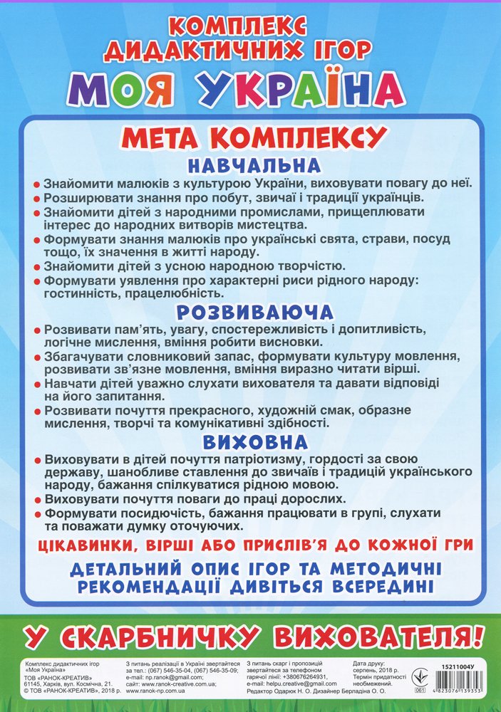 - Знайомити малюків з культурою України, виховувати повагу до неї.