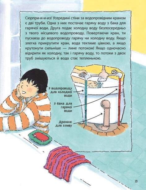 У пригоді стане ця книжка — світовий бестселер, що допомагає дорослим у всьому світі відповісти на найкаверзніші (а іноді – найкумедніші) запитання. Юні шукачі й шукачки відповідей побувають «за лаштунками» супермаркету та відвідають ферму, дослідять кухню й ванну кімнату, щоб дізнатися, як влаштоване життя на планеті!