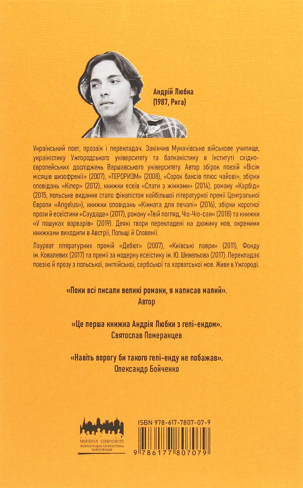 Молодий український поет прокидається з бодуна, і його осяює геніальна ідея: треба одружитися, щоб упорядкувати своє життя і завдяки цьому написати Великий Український Роман! Але одружитися з ким? Котру з минулих любовних пригод узяти з собою у світле літературно-сімейне майбутнє? Відповідь на це запитання герою допоможе знайти вірний друг і знаний рибак Паша, а також поліція і група кровожерних гуцулів. Фройд вдоволено потирав би руки, дізнавшись, що в українській літературі нарешті з’явився перший роман про трембіту. Так, поки що малий, але ж розмір – це не головне, правда?