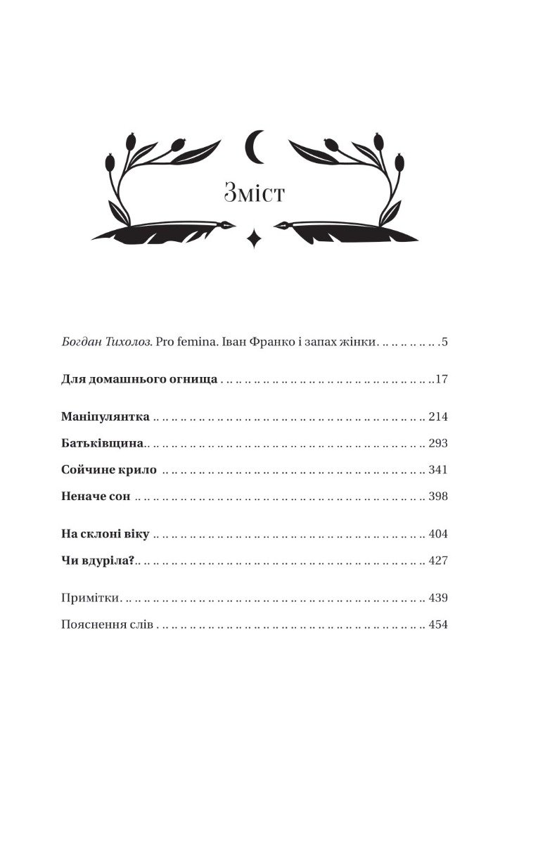 «Жіночі» тексти чоловіка… Це взагалі можливо? Несподіваний і нехрестоматійний Франко переконливо доводить, що так. Сексуальне рабство, проституція і торгівля людьми, війна і посттравматичний синдром, теорія і практика брехні й техніка пікапу, криза традиційного подружжя і патріархальної моралі, кримінальні злочини і слідство, мобінг і суїцид — усе це круто змішано в міцному коктейлі його «профеміністичної» прози й драматургії. Та головне — усі ці твори об’єднують тема жіночої емансипації і наскрізний образ сильної, пристрасної, харизматичної жінки, котра змагається за власне щастя, свободу і незалежність. Навіть ціною життя