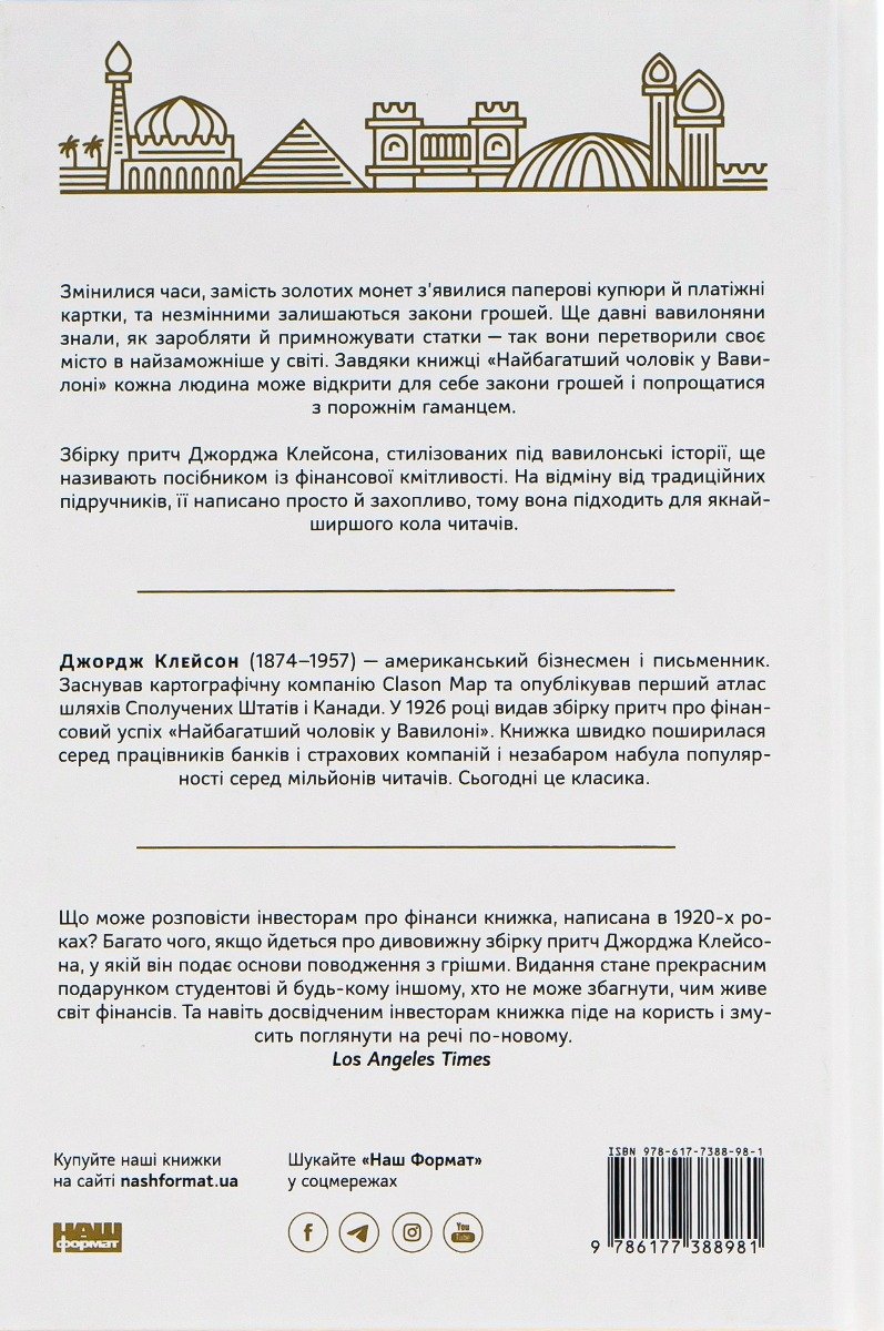 Автор книги Джордж Клейсон був військовим, бізнесменом і письменником. Він заснував дві компанії — Clason Map Company і Clason Publishing Company. У 20-х роках минулого століття він написав серію інформаційних брошур про те, як бути ощадливим і досягти фінансового успіху. Автор використав контекст стародавнього Вавилону й загорнув бізнес-поради у цікаві притчі. Після успіху цих текстів письменник зібрав найпопулярніші з них і в 1926 році видав повноцінну книгу, яка розійшлася понад 2 млн примірників. Сьогодні вона вважається сучасною класикою фінансової самодопомоги.