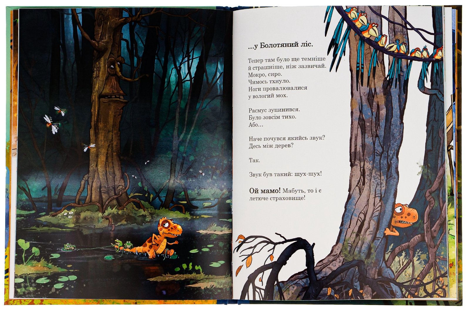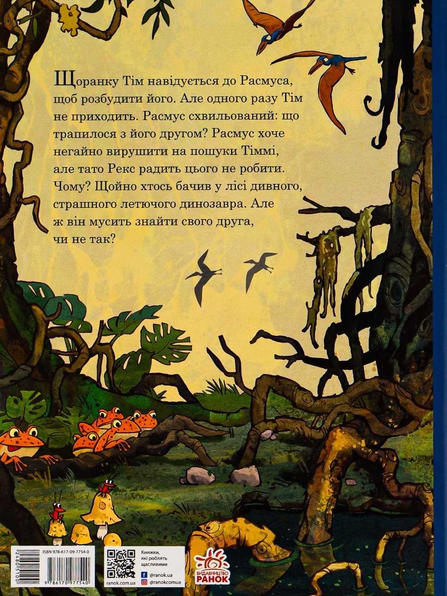 Проте одного разу Тіммі не приходить. Расмус схвильований: що трапилося з його другом? Він вирішує негайно відшукати Тіммі. Але тато Рекс застерігає: щойно хтось бачив у лісі дивного, страшного, летючого динозавра. Расмус наляканий, проте він обов’язково вирушить на пошуки друга, чи не так?