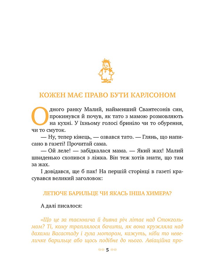 «Що це за таємнича й дивна річ літає над Стокгольмом?», — запитує столична газета. Нам би з Малим не знати: це наш герой Карлсон, що живе на даху!