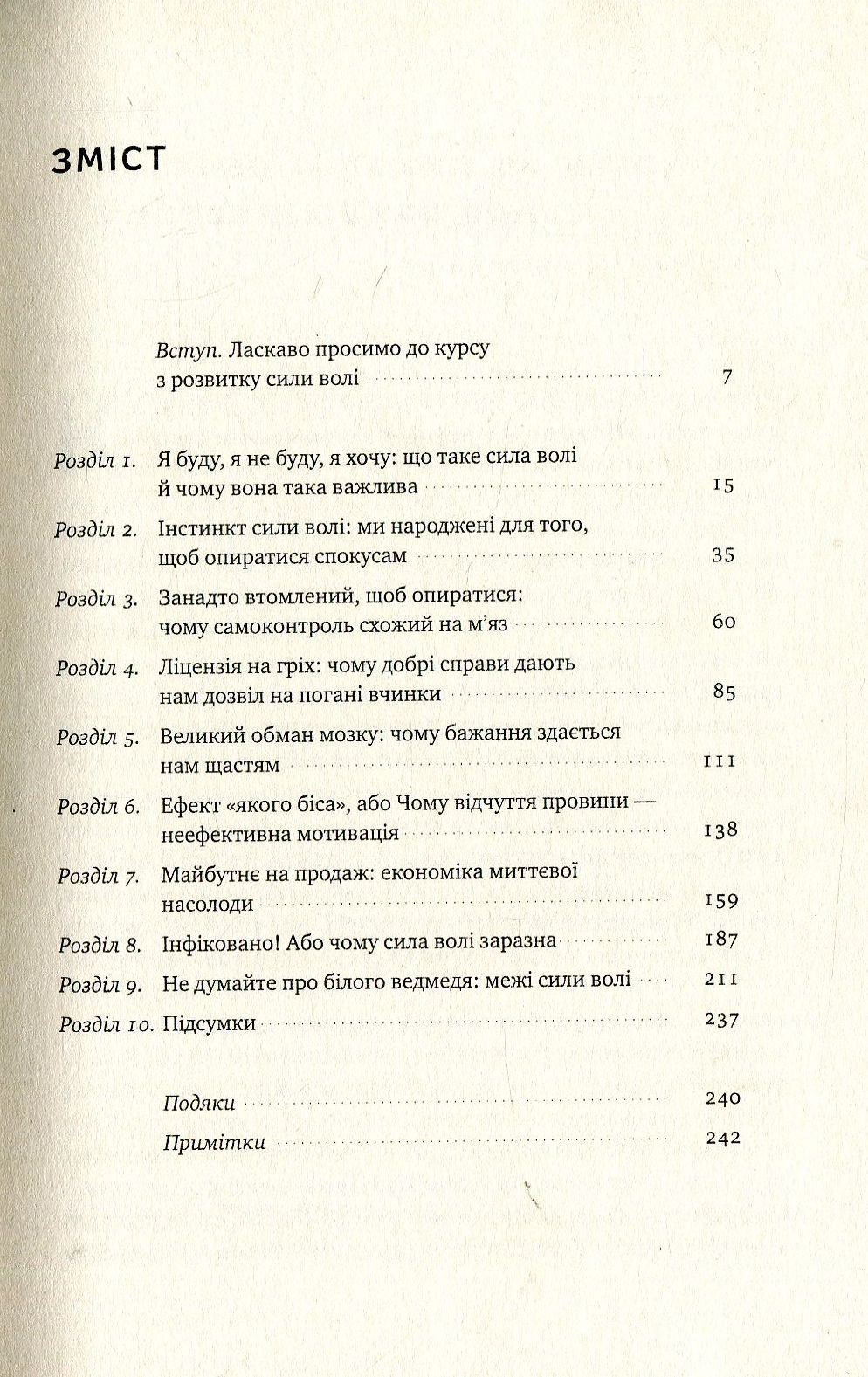 Основою книжки став курс «Наука сили волі», який Келлі Макґоніґал викладає в Стенфордському університеті. Професорка вдало поєднала цікаві факти про те, як функціонує наш мозок, із вправами, які тренують силу волі. Ви довідаєтеся, чому в стресовій ситуації тягнетеся за цукеркою та «провалюєте» більшість планів на рік.