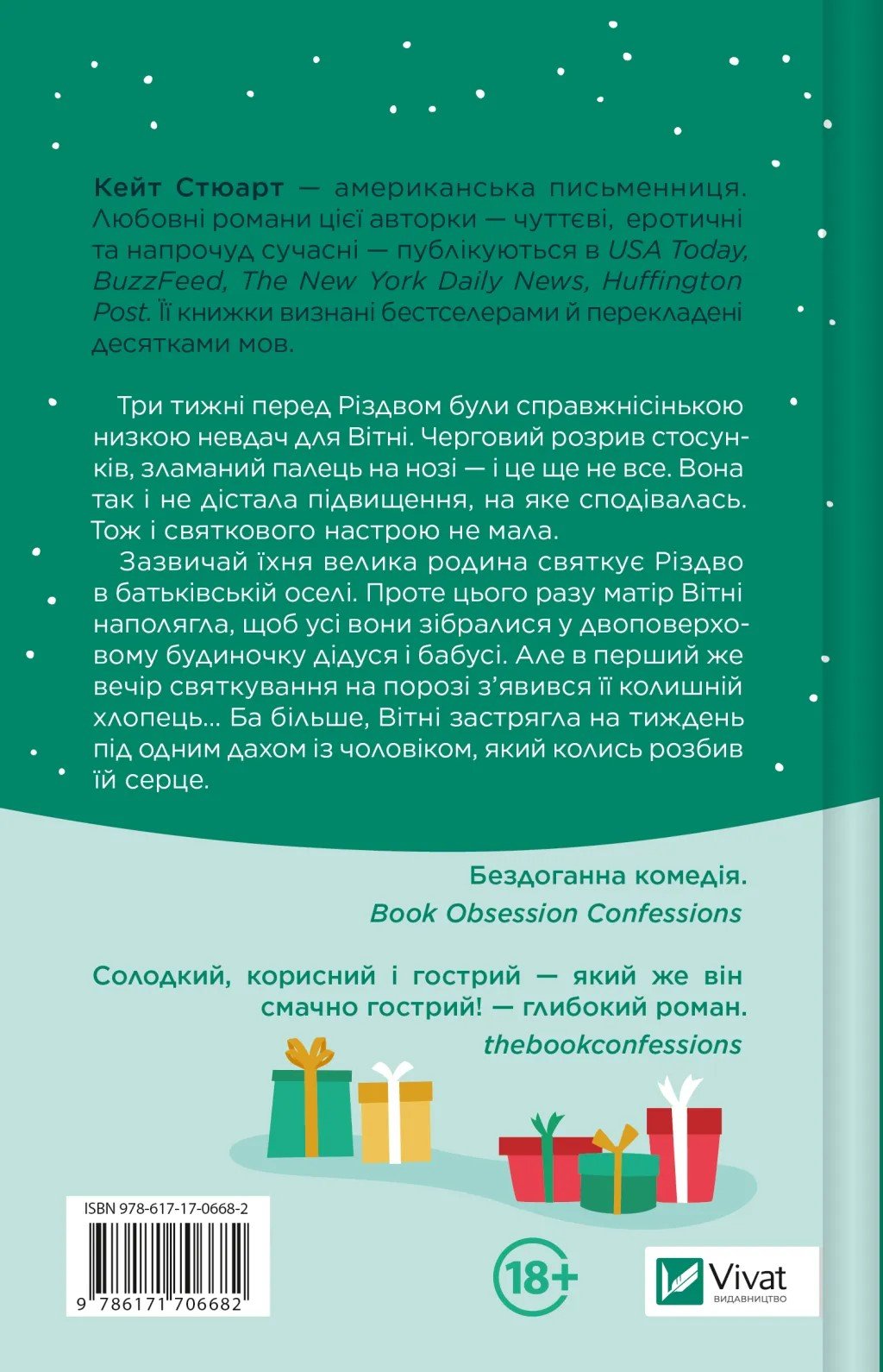 Зазвичай їхня велика родина святкує Різдво в батьківській оселі. Проте цього разу матір Вітні наполягла, щоб усі вони зібралися у двоповерховому будиночку дідуся і бабусі. Але у перший же вечір святкування на порозі з’явився її колишній хлопець… Ба більше, Вітні застрягла на тиждень під одним дахом із чоловіком, який колись розбив їй серце.