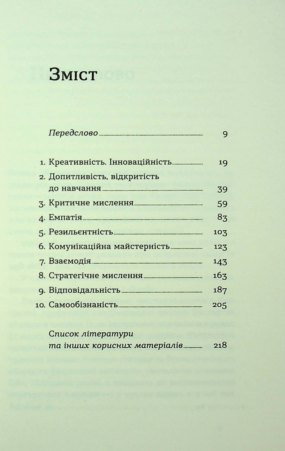 Посібник має зручну структуру з розділами, які розкривають теми креативності, критичного мислення, відкритості до навчання, комунікації, адаптації, стратегічного мислення, відповідальності тощо. Також у книзі є список літератури та корисних джерел, що стануть у пригоді тим, хто захоче продовжити шлях саморозвитку у заданому напрямі після прочитання цього видання.